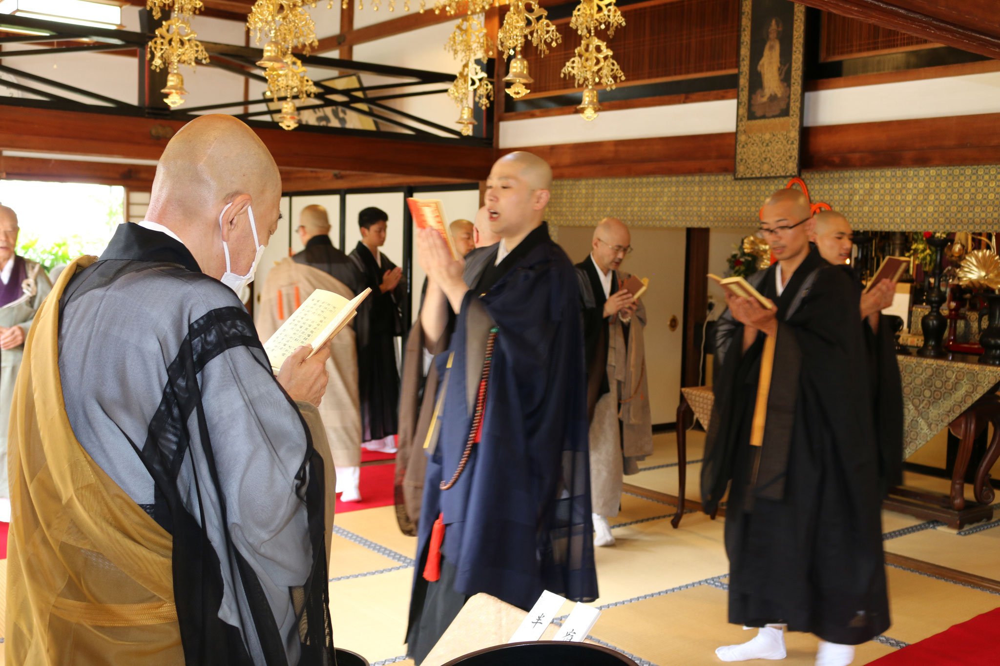 慣行となった法要とはいえ、開山忌に行われる僧侶や信者たちが読経や勤行を行う光景はまさしく感動的です。