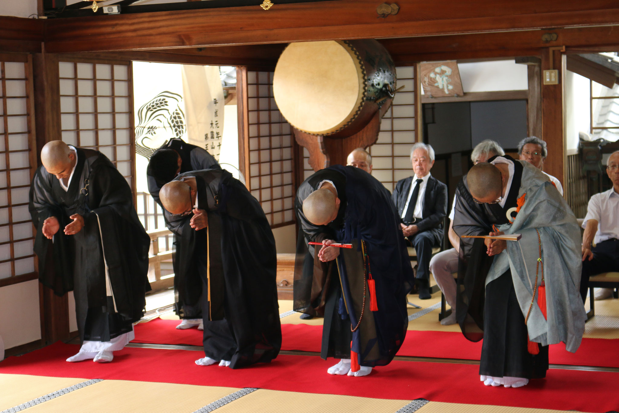 昨日9月10日(火曜日)恒例の開山忌法要が執り行なわれました。開山忌法要は当院の最も重要な年間行事の一つで、当山開山龍淵禅師を初め歴代各和尚の毎歳忌法要です。前日9日の宿忌に続き、当日10日の毎歳忌は午前10時から開始されました。大中寺(神戸市北区)住職野中大典師により「山岳と仏教」と題した法話に始まり、午前11時から毎歳忌法要が厳粛に執り行われました。